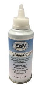 Safely and quickly remove thermal adhesive heat sealed labels and the residue from most garments. Approved in all states. Safe for corduroy, cotton, flannel, fleece, polyester, spandex, polyester velour, silk and wool. A 6oz fluid can. Ground ship only.