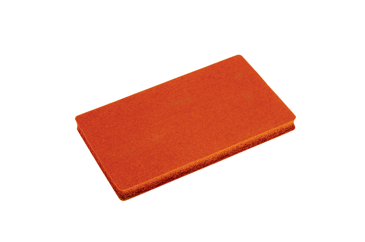 Replace lower interchangeable pads when they show wear and stains and are damaged. Seven interchangeable red pads screw onto their aluminum brick. The orange pad is glued on to its brick.